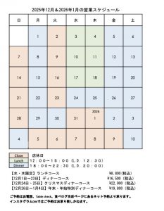 12月営業スケジュール